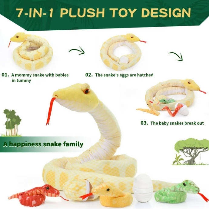 Animal de peluche de serpiente gigante personalizado con 3 bebés y 2 huevos edredón hecho de tela de algodón de poliéster relleno de algodón PP