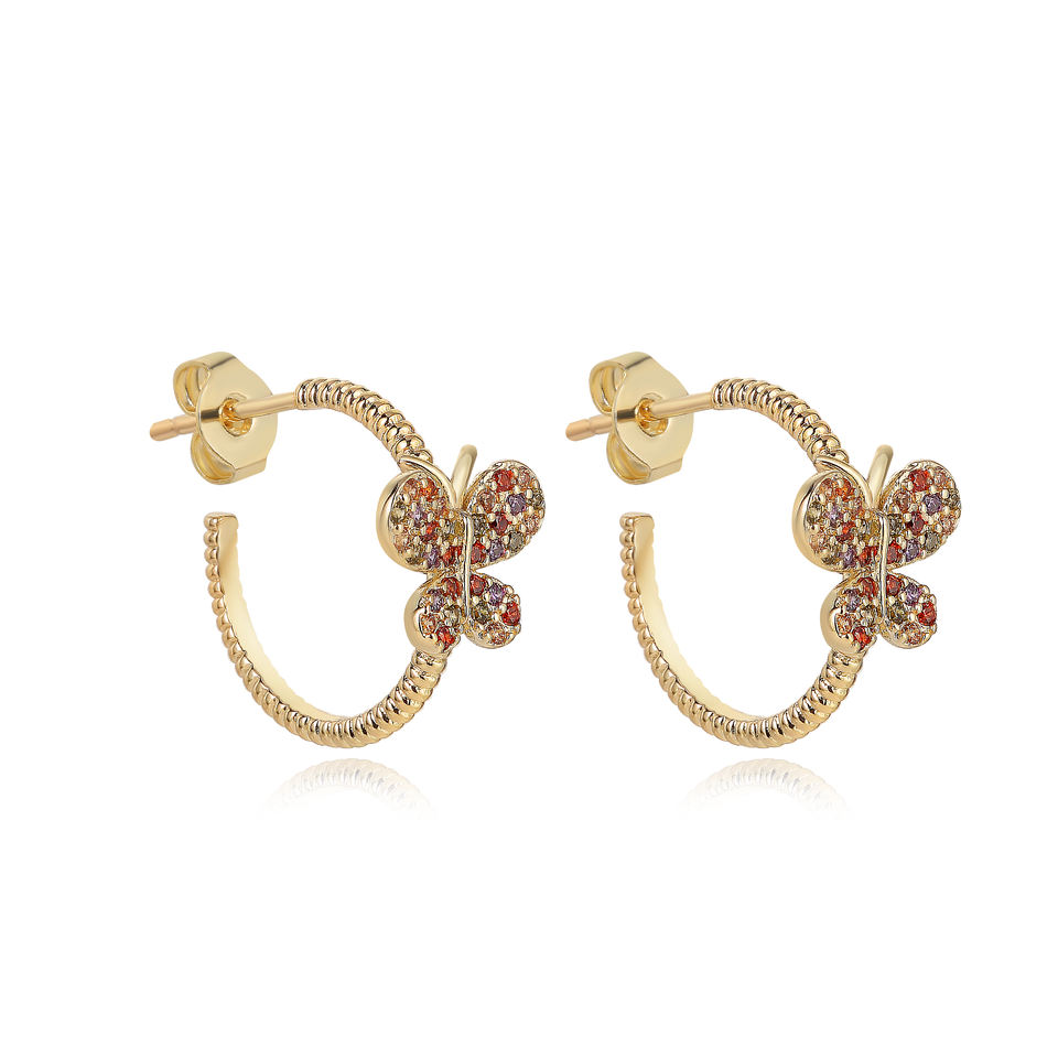 Aretes Pequeños de Plata de Ley con Dijes de Circonita Arcoíris Coloridos en Oro de 14k para Niña, Regalo para Recién Nacido con Diseño de Mariposa