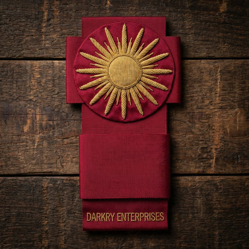 Parches bordados personalizados de alambre de oro, hechos a mano, de terciopelo negro, redondos, en blanco, para insignias masónicas, con borde de cadena, para fabricantes de parches.