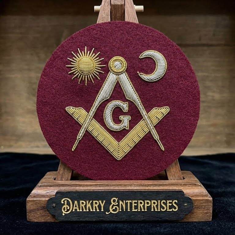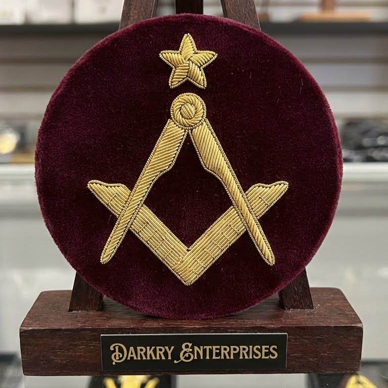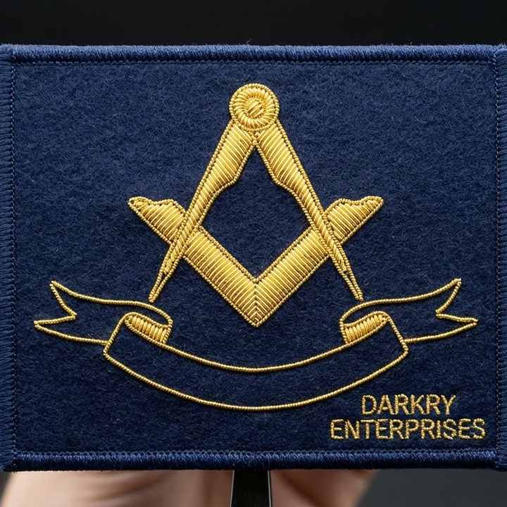 Parche de Bordado a Mano con Hilo de Oro Personalizado, con el Escuadra y Compás Masónicos, para Uniformes de Logia y Ropa Ceremonial