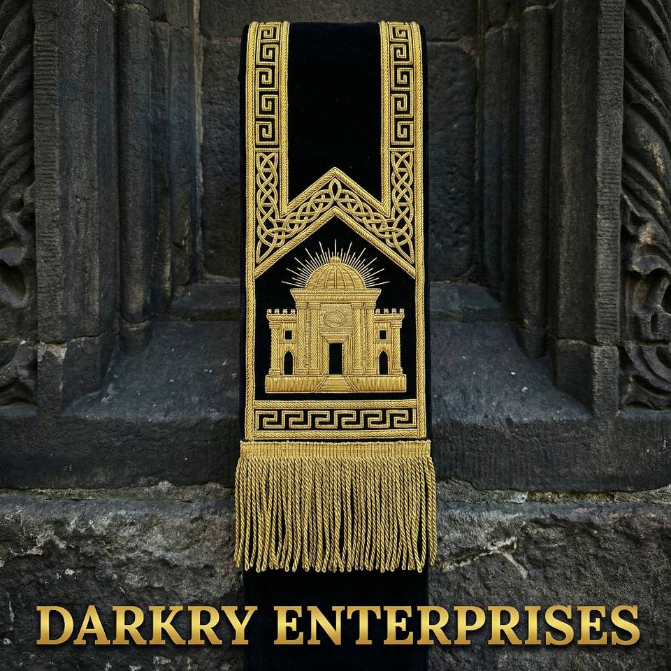 Faja Masónica de Terciopelo Azul con Bordado a Mano de Hilo de Oro Personalizado, Emblema G de Compás Cuadrado y Flecos Dorados para Maestro Masón