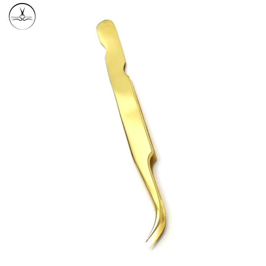 Pinzas Profesionales Personalizadas de Acero Inoxidable Color Dorado para Extensión de Pestañas, Herramienta para Volumen de Pestañas con Punta Fina, Marca Privada Caesar