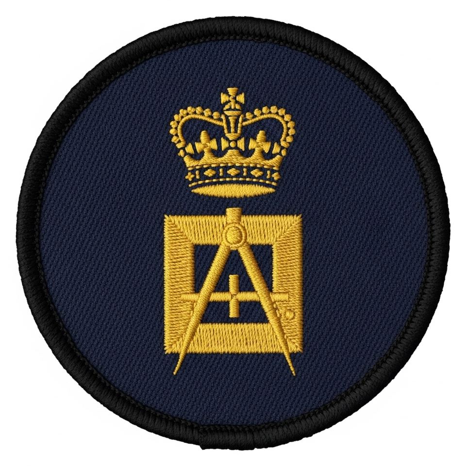 Parche Masónico Personalizado con Bordado Dorado de Columna y Emblema de Corona de Laurel, Redondo, Azul Marino, Insignia Fraternal para Blazers