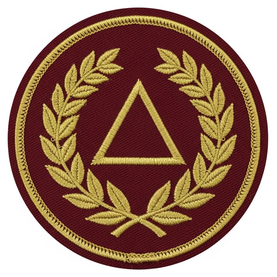 Parche Masónico Triangular Delta Bordado en Oro Personalizado, Corona de Laurel, Insignia Fraternal Redonda Color Granate para Blazers y Uniformes