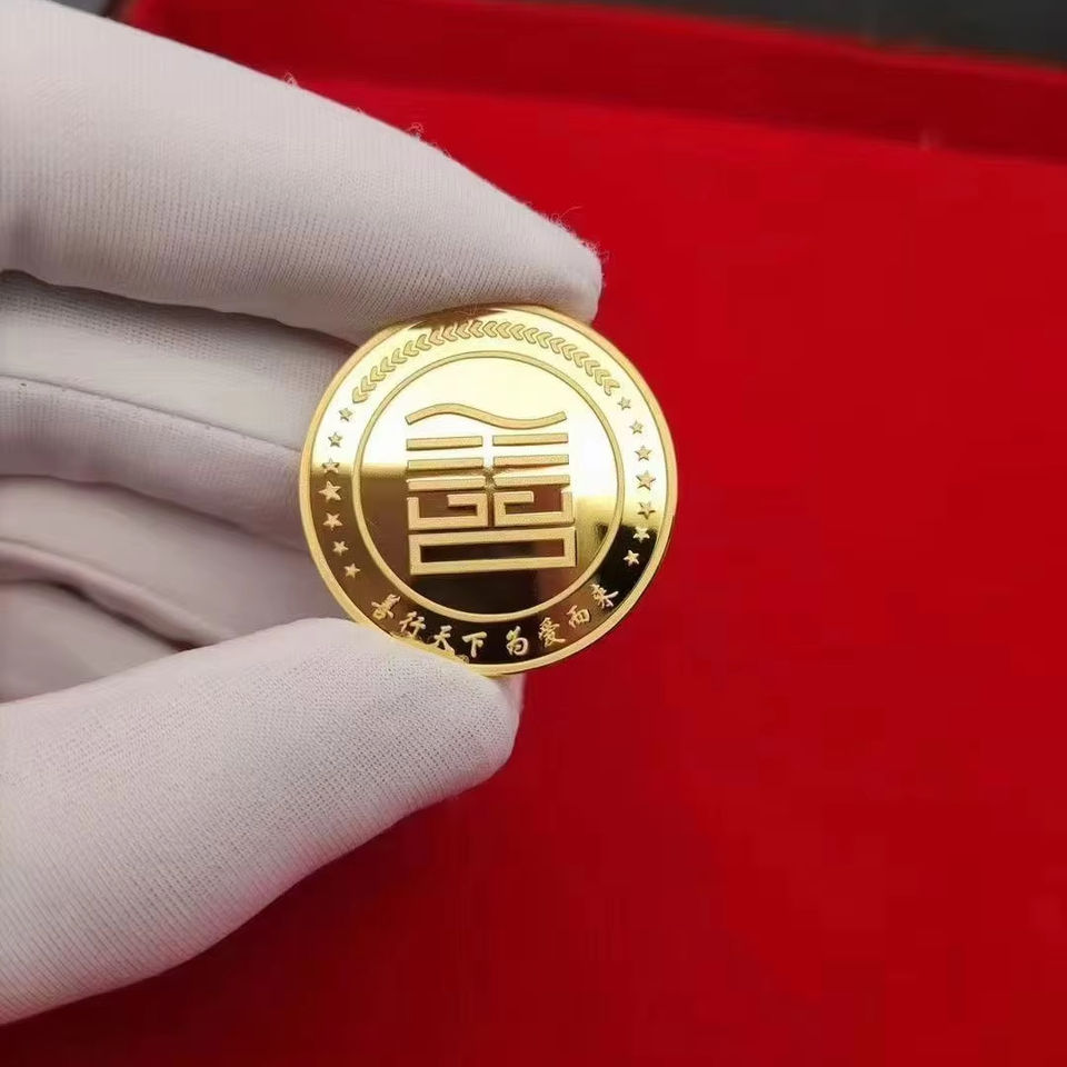 Moneda conmemorativa de acero inoxidable chapada en oro personalizada con logotipo personalizado grabado ISO9001 certificado para recuerdos de caridad