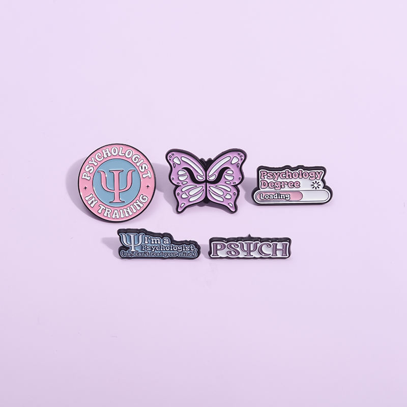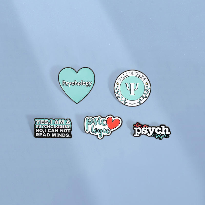 Broches médicos de color dorado y plateado personalizados, insignias de solapa de salud mental, con símbolo de psicologia, esmalte suave