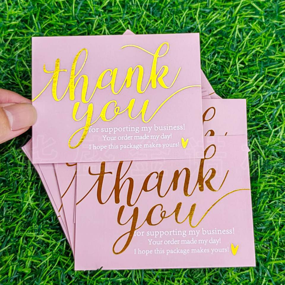 Tarjetas de visita plegadas con estampado de oro personalizado, papel Posventa de comercio electrónico, Impresión de cartón, cartas de agradecimiento y disculpa