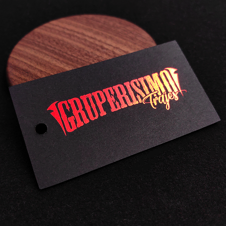 Logotipo de estampado de oro personalizado, tarjeta de visita, venta directa de fábrica, etiquetas colgantes de ropa de marca Gilt the Edge, etiquetas oscilantes de oro rojo