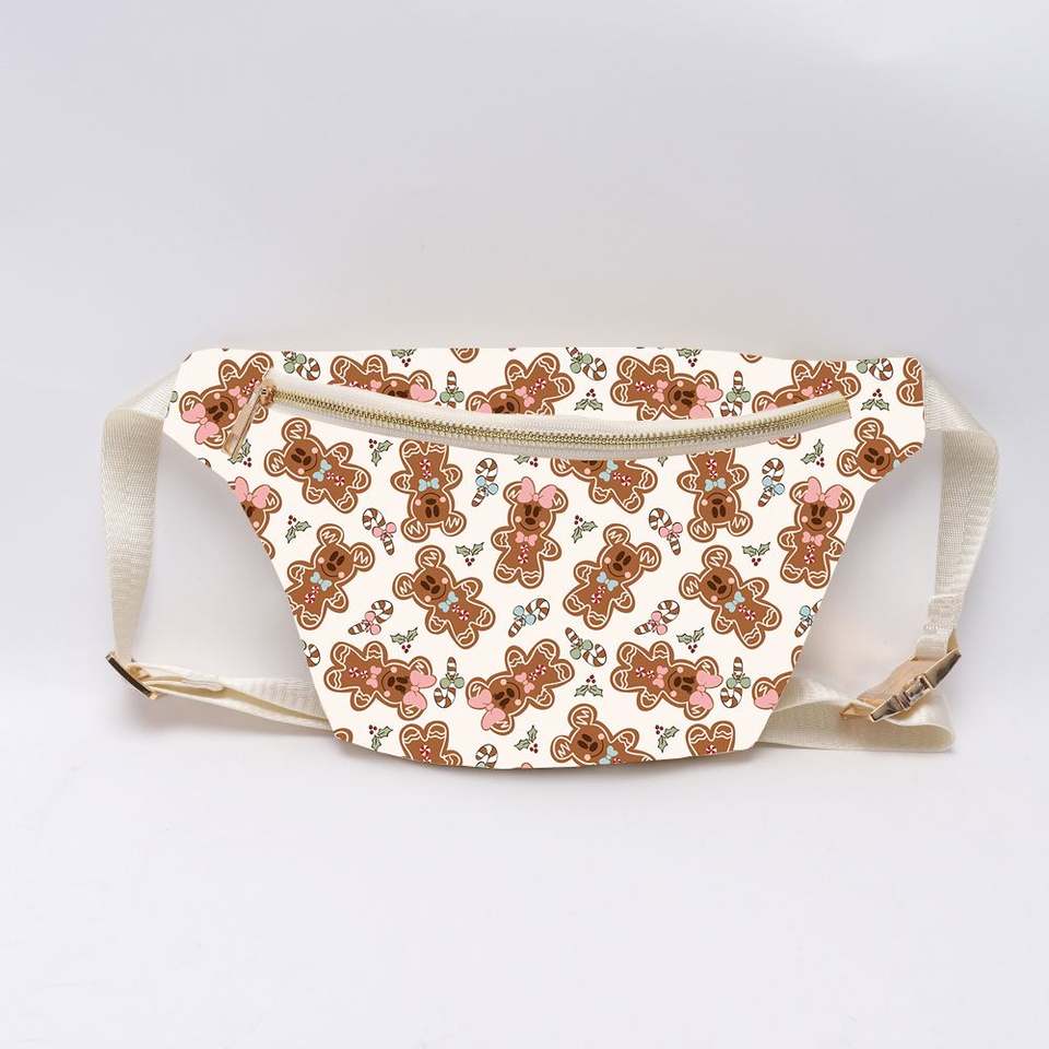Bolso Bandolera Personalizado con Cremallera Dorada, Temática Parque Mágico, Impermeable, de Nailon, con Correa, Nuevo, Grande, Unisex, Diseño de Galleta de Jengibre Navideña