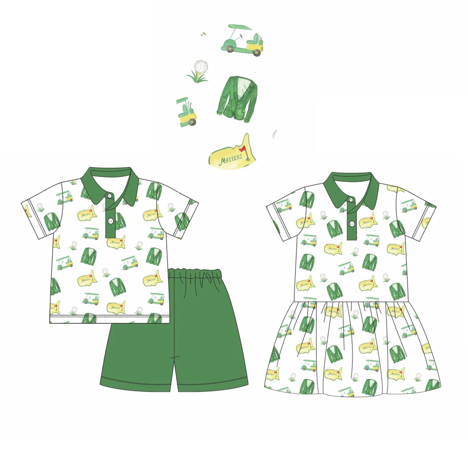 Conjuntos de Shorts para Niños con Estampado Personalizado de Carrito de Golf, Vestidos Lindos para Niñas, Conjuntos a Juego para Hermanos, Ropa de Bebé al por Mayor, Nuevos Estilos