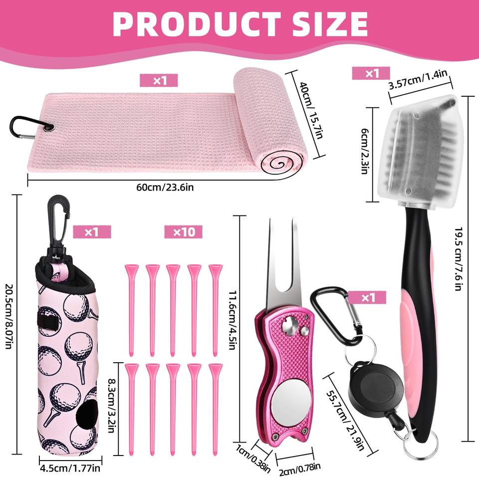 Kit de Accesorios de Golf Personalizados, Cepillo Limpiador de Palos de Golf con Herramienta para Limpiar Ranuras, Bolsa para Pelotas de Golf con Gancho, Herramienta para Reparar Divots