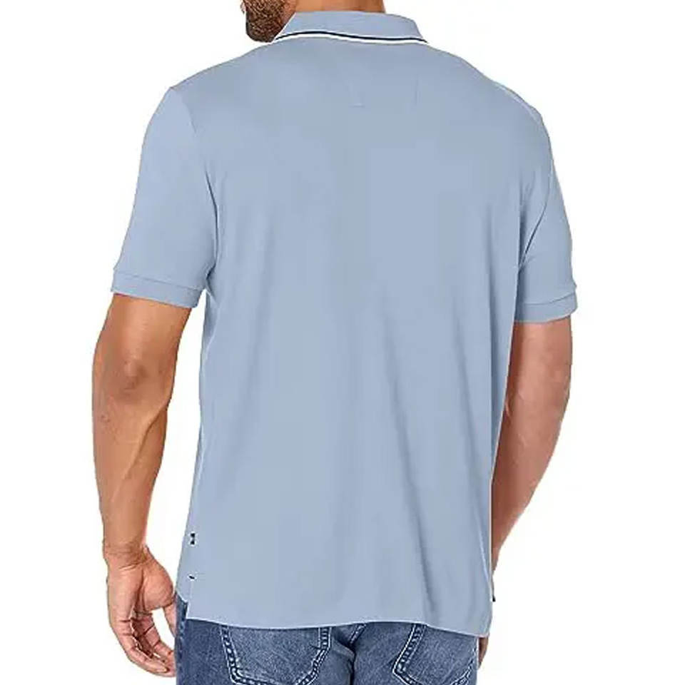 Polo personalizado para hombre de manga corta de alta calidad ecológico Producción Sostenible azul blanco sublimado marca antiarrugas
