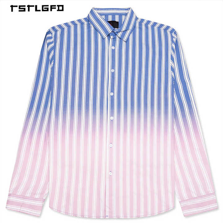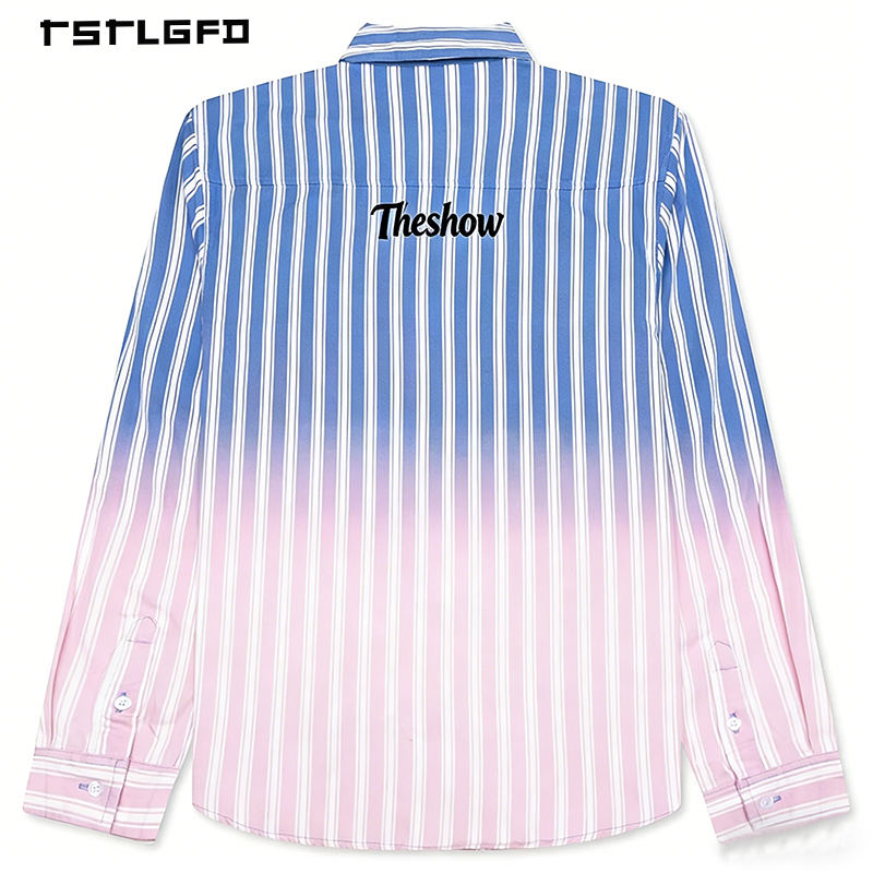 Camisa Casual para Hombre, Diseño a Cuadros Degradado Personalizado, Manga Larga, Cuello Abotonado, Corte Ajustado, Estilo Vintage, Transición Azul-Rosa, 100% Algodón, 2026
