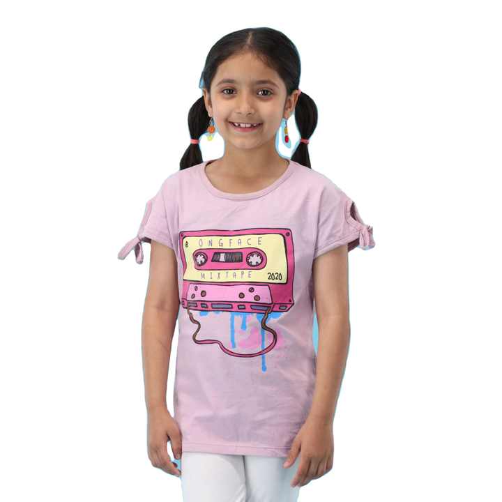 Tela de algodón peinado puro para niñas, camiseta de manga larga Regular con estampado personalizado, color rosa claro, 100%