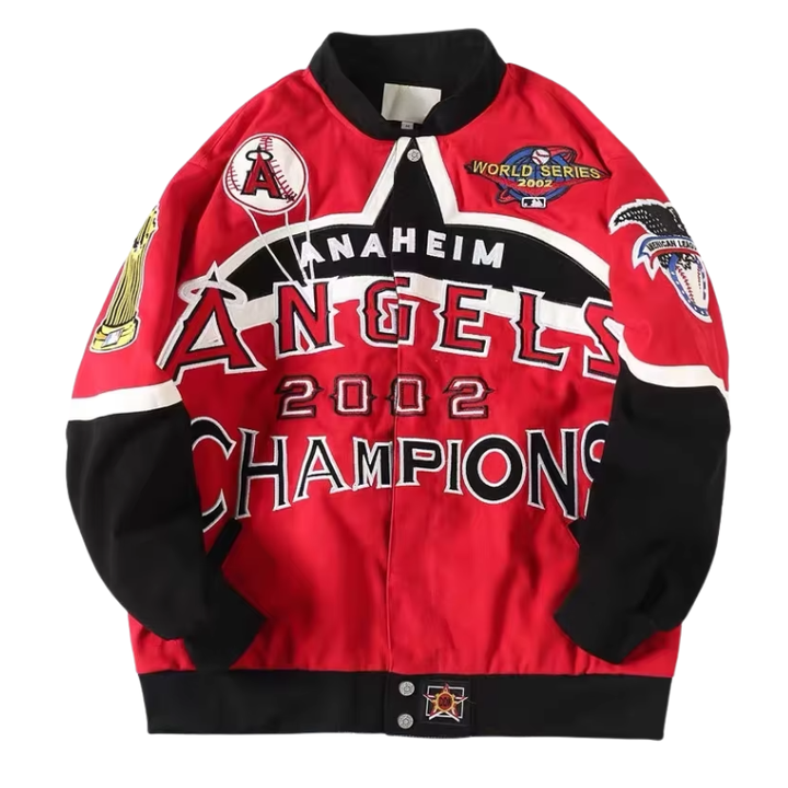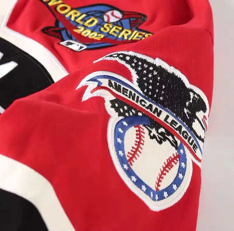 Chaqueta Bomber con Parche Gráfico Personalizado, Diseño de Apliques, Cuello Alto, Puños, Bordado Artístico Pesado OEM, 100% Algodón, Invierno, Estilo Racing