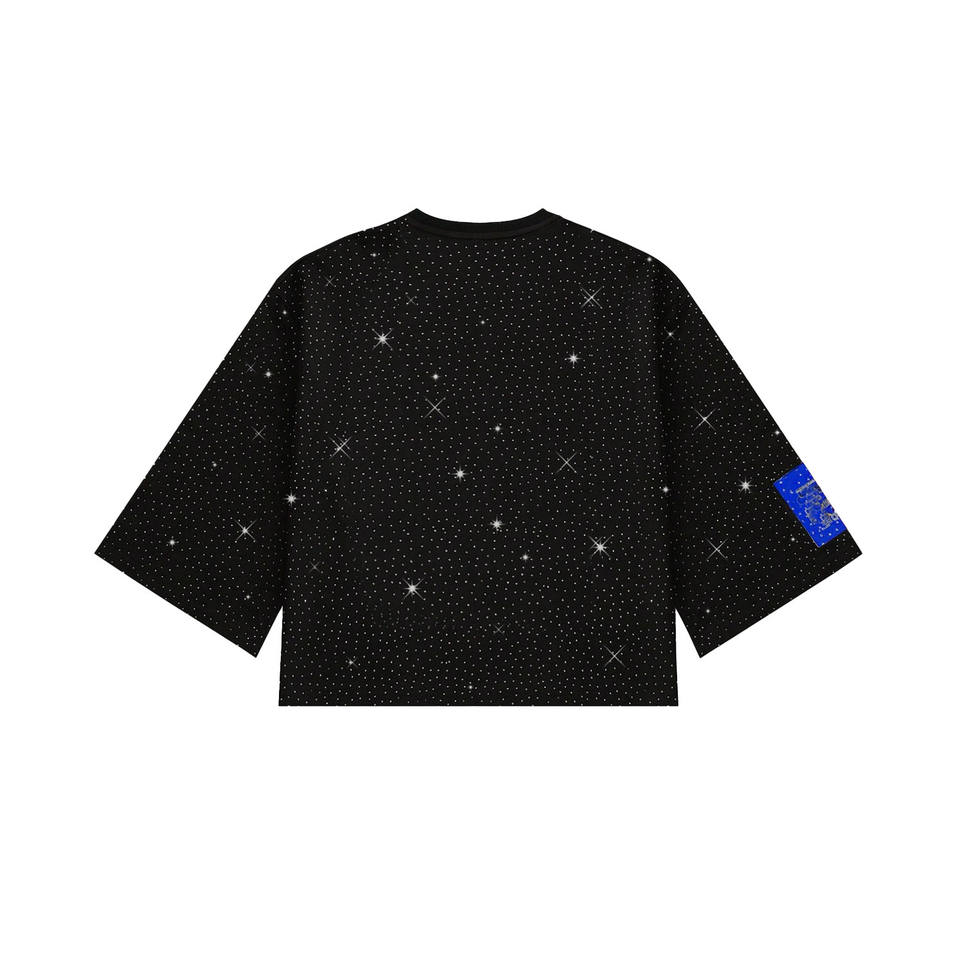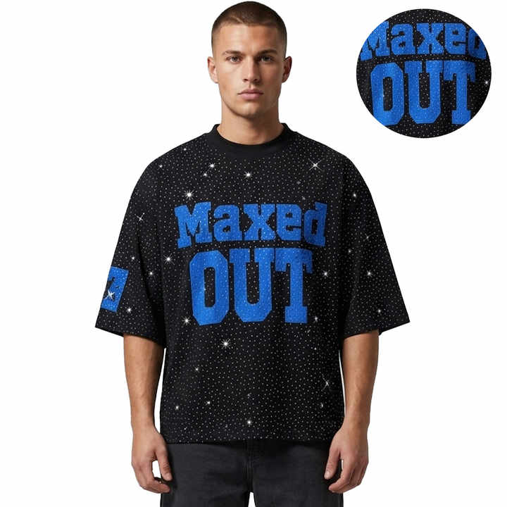 Camiseta con Estampado Gráfico Personalizado, Detalle de Pedrería, Corte Holgado, Algodón Premium, Estilo Hip Hop, Alta Calidad, Proveedor al por Mayor