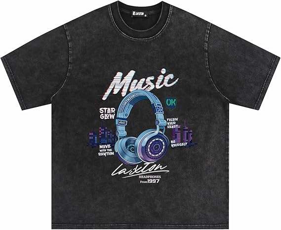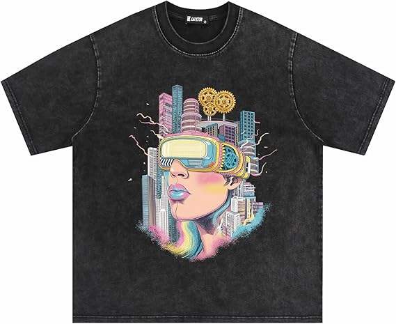 Camiseta Oversize con Estampado Gráfico Personalizado, Lavado a la Piedra, Estilo Hip-Hop, 100% Algodón Transpirable, de Alta Calidad