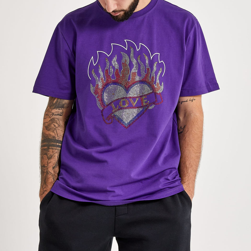 Camiseta Urbana Extra Grande con Gráficos Personalizados y Pedrería, Tela de Poliéster/Algodón, Ecológica, Transpirable, de Alta Calidad para Hombre