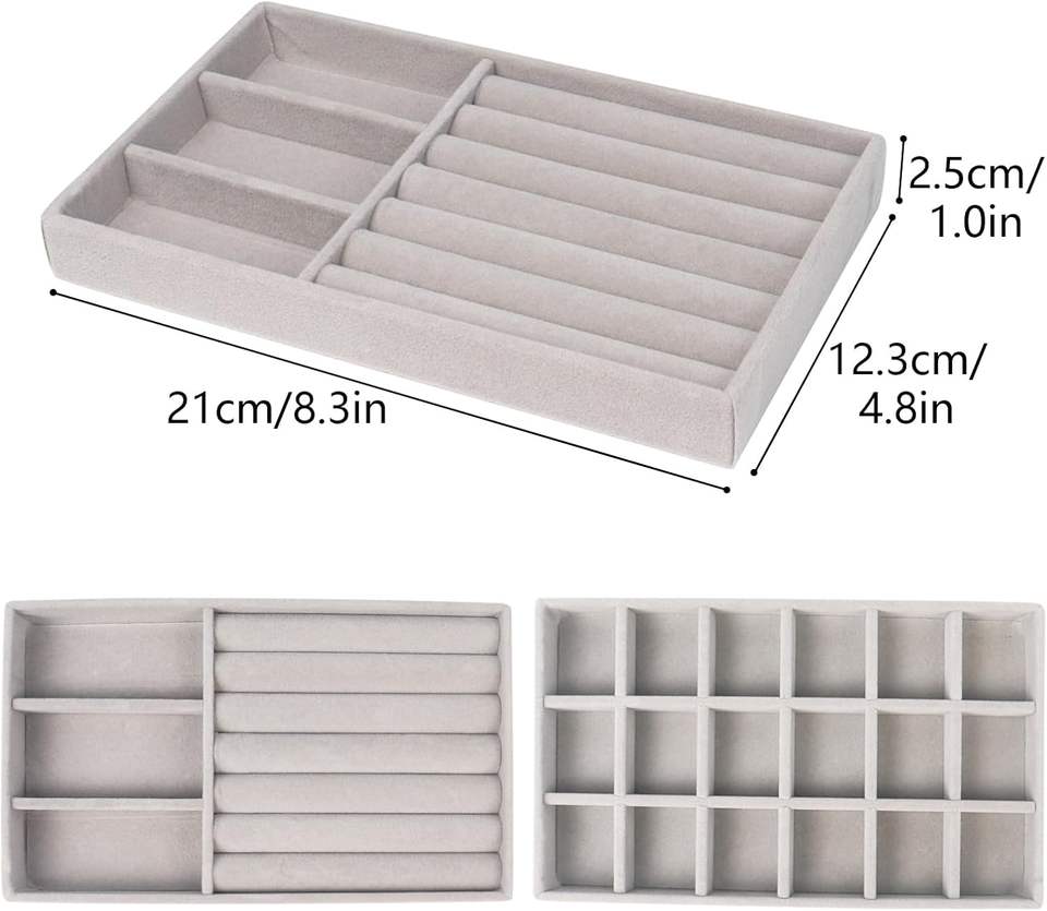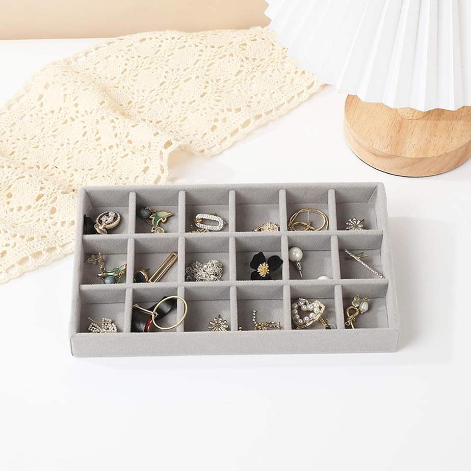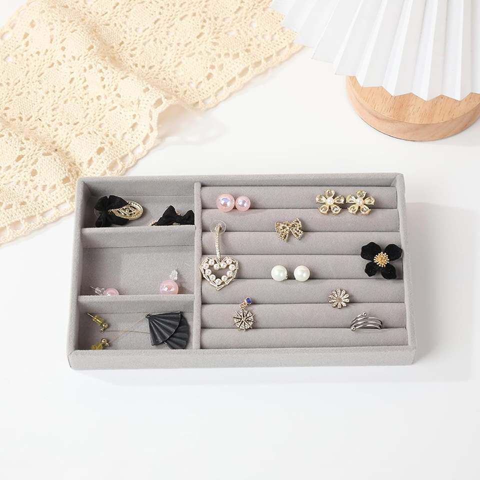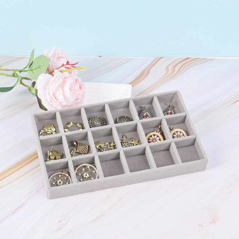 Bandeja de terciopelo gris personalizada para anillos y pendientes, expositor de joyería, contenedor de almacenamiento, bandeja para joyas