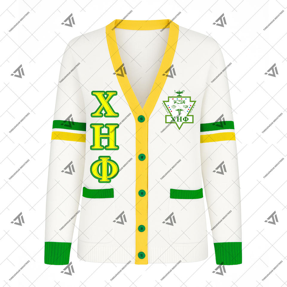 Cárdigan personalizado griego Chi Eta Phi Sorority ropa algodón todo blanco botón abajo rayas suéter