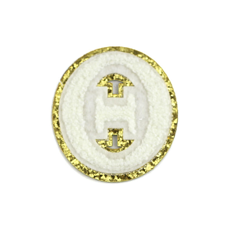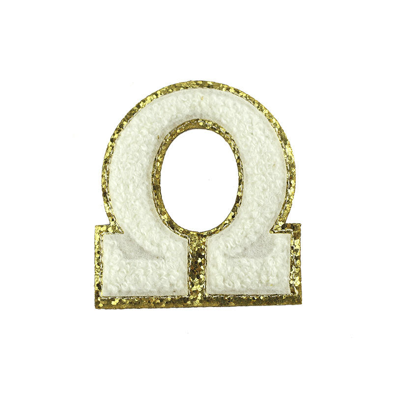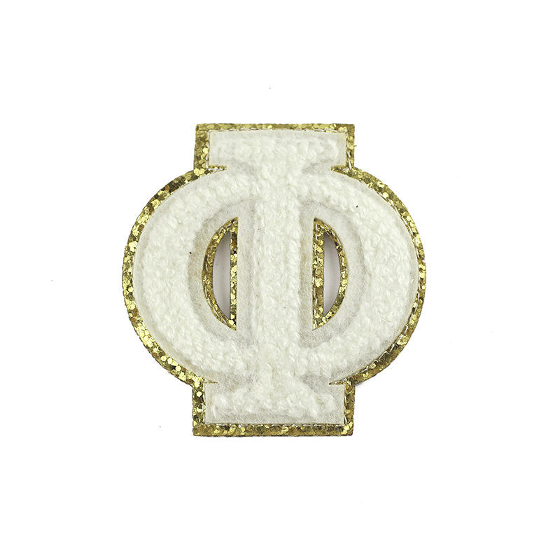 Personalizado letras griegas alfabeto calor prensa Chenille parches hierro en la ropa apliques personalizados letras bordadas Chenille parches