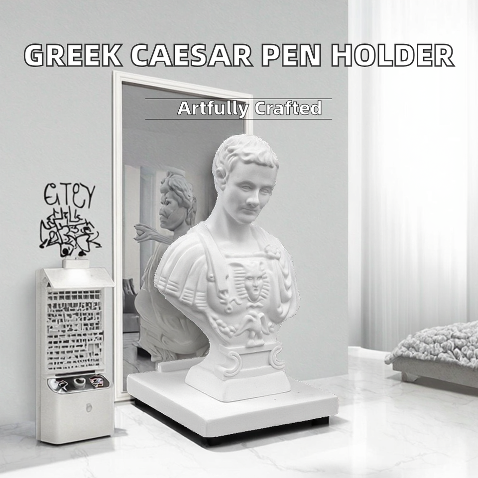 Estatuilla de Resina Griega Personalizada de Julio César, Pintada a Mano, Soporte Artístico para Lápiz de Cejas, para Tocador u Oficina