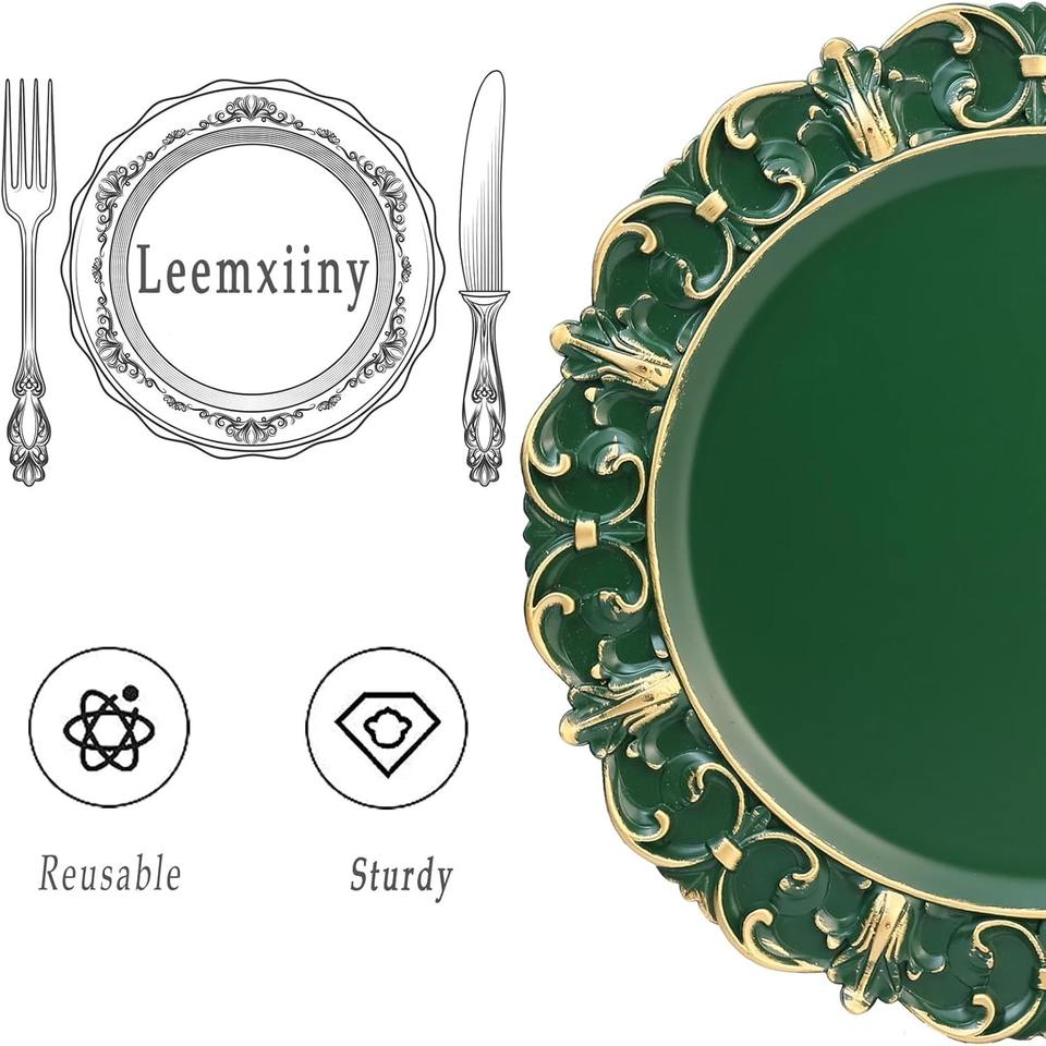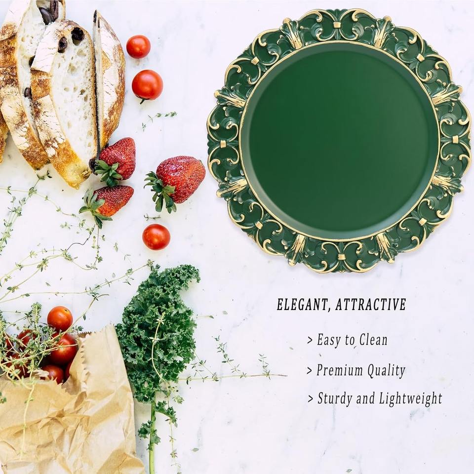 Platos Base Decorativos Verdes Personalizados de Plástico para Platos de Cena, Fiestas, Bodas, Acción de Gracias, Navidad