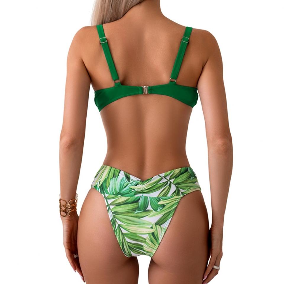 Conjunto de Bikini Personalizado con Hojas Verdes a Juego para Parejas, Tanga para Mujer y Top Push-Up, Traje de Baño para Hombre, Ropa de Playa