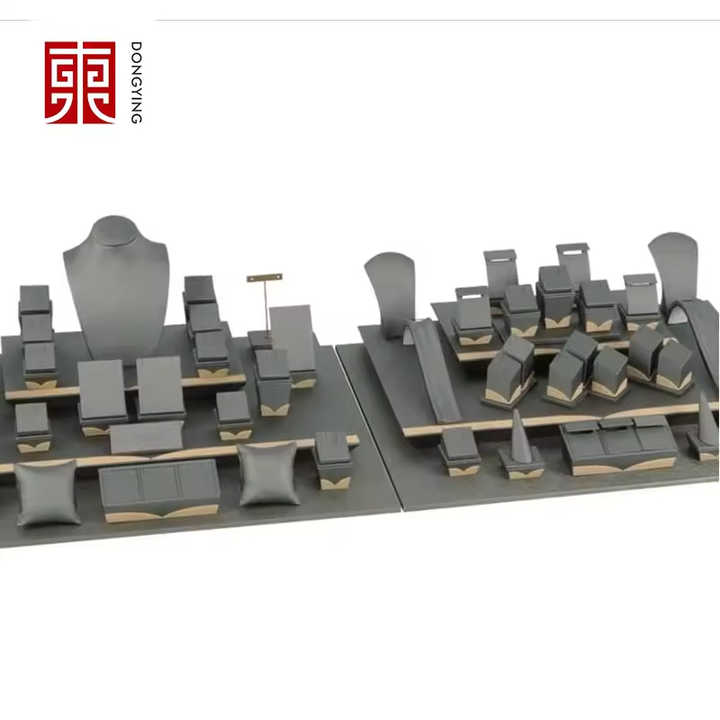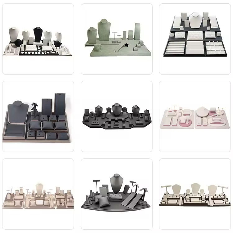 Juego de Soportes de Exhibición de Joyería de Microfibra Gris Personalizados, Organizador de Joyería, Juego de Soportes de Exhibición de Joyería para Tienda