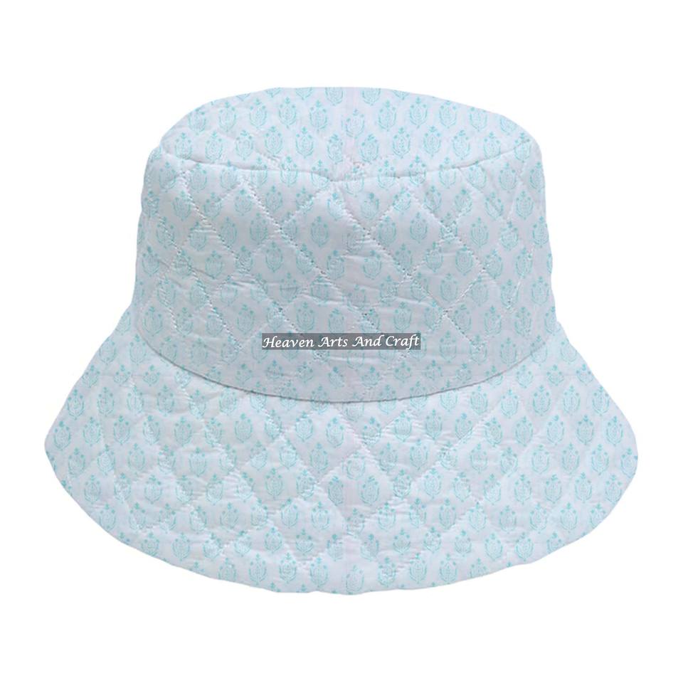 Sombreros de Pescador Plegables de Moda, Sombreros de Cubo Acolchados Cálidos para Mujer, Hechos a Mano con Estampado de Bloques en Algodón