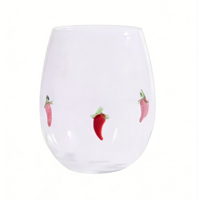 Vaso de Vidrio Creativo de Borosilicato Soplado a Mano, Taza Decorativa con Diseño de Chile Rojo, 300/400 ml