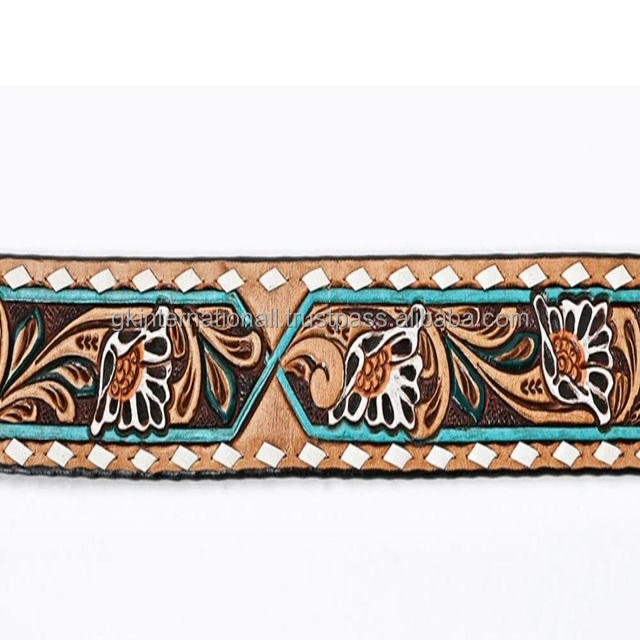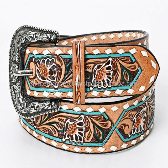 Cinturón de Cuero Occidental para Hombre, Tallado a Mano, con Grabado en Relieve, de Piel de Vacuno de Grano Completo, con Hebilla de Vaquero Grabada