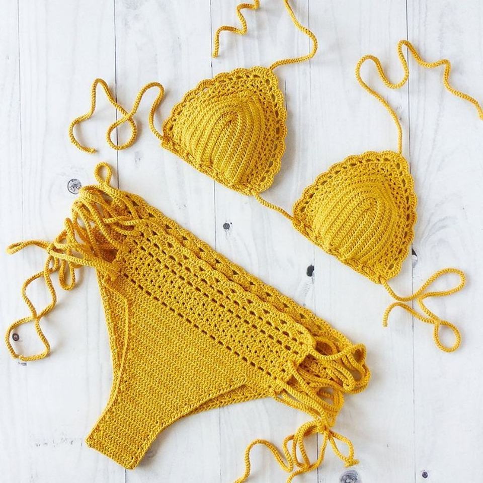 Bikini de Ganchillo Hecho a Mano Personalizado, Traje de Baño de Dos Piezas con Aberturas, Ropa de Playa, Fabricante de Trajes de Baño para Mujer