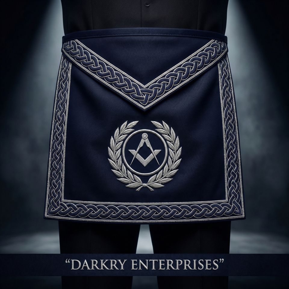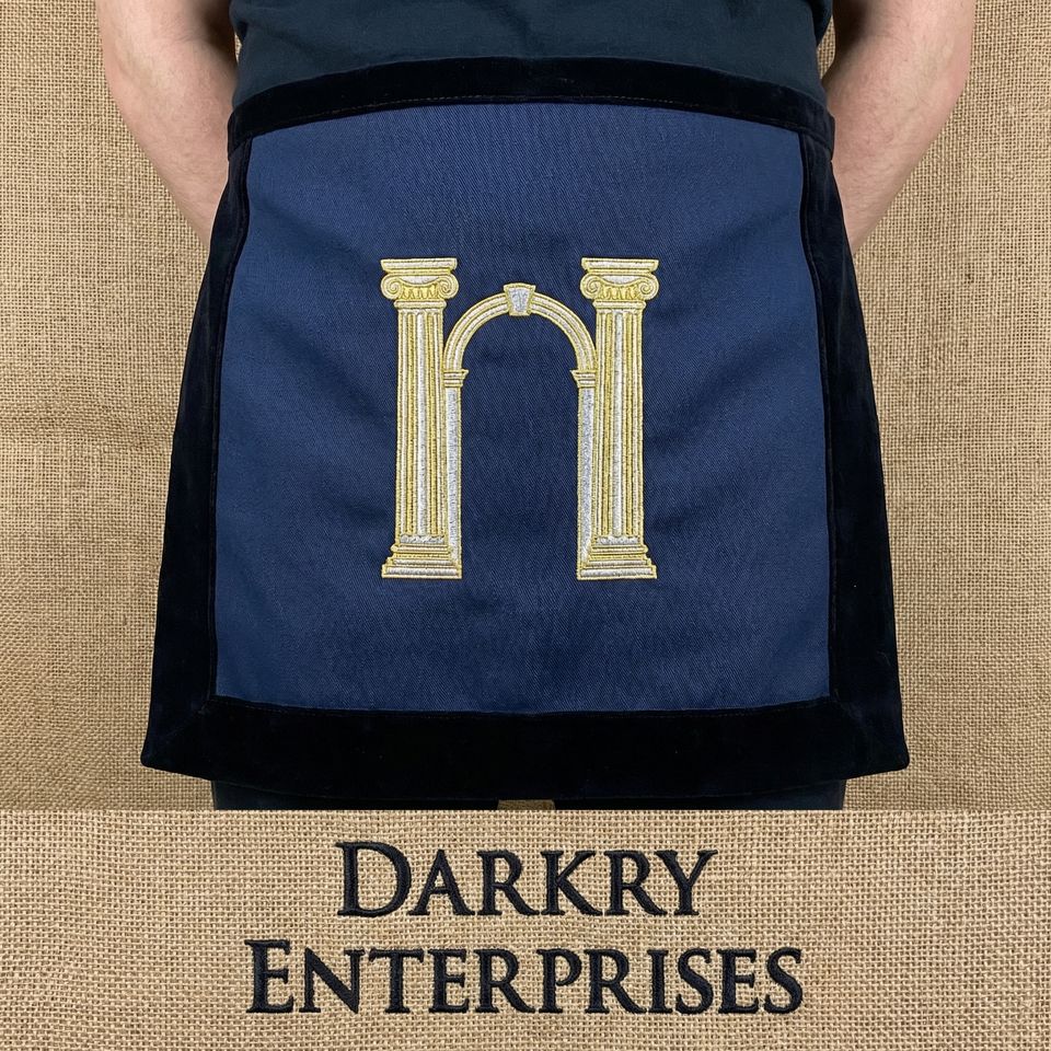 Delantal Masónico de Terciopelo Azul Rey con Bordado a Mano Personalizado y Corona de Laurel con Hilo Dorado, Artesanía Hecha a Mano, Regalia de Logia