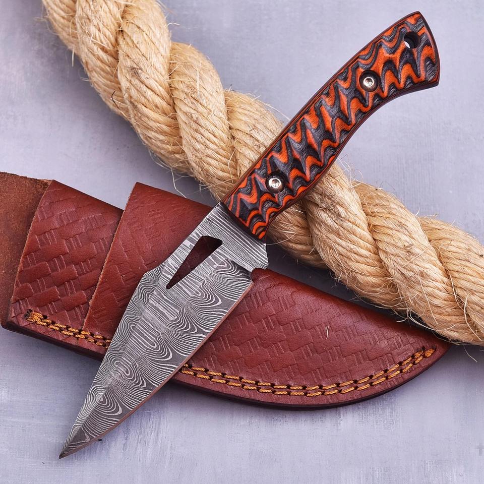 Cuchillo de caza EDC de acero de Damasco forjado a mano personalizado, hoja fija, Funda de cuero, compatible con OEM, cuchillo de vaquero de nuevo diseño
