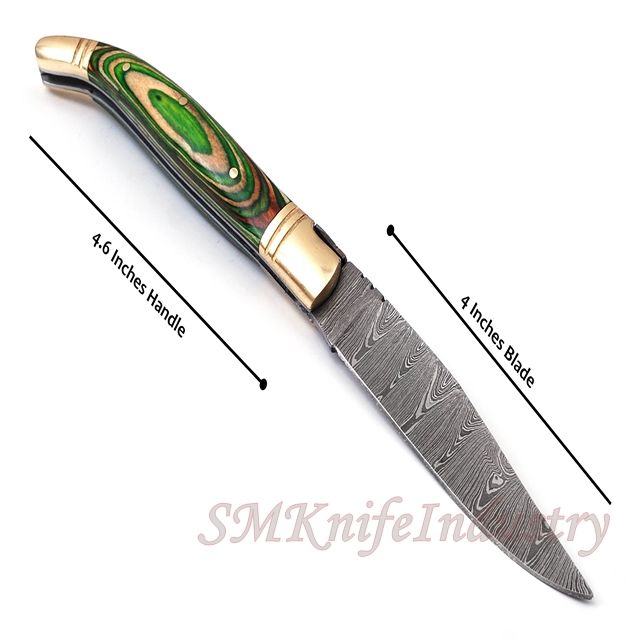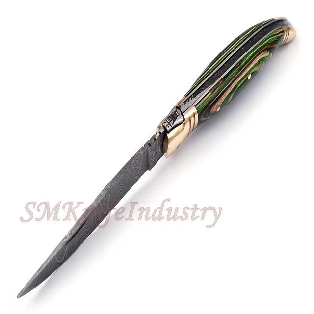 Cuchillo de bolsillo plegable de Damasco, hecho a mano, con Funda de cuero (smk1271), multifuncional, Sm, Color madera