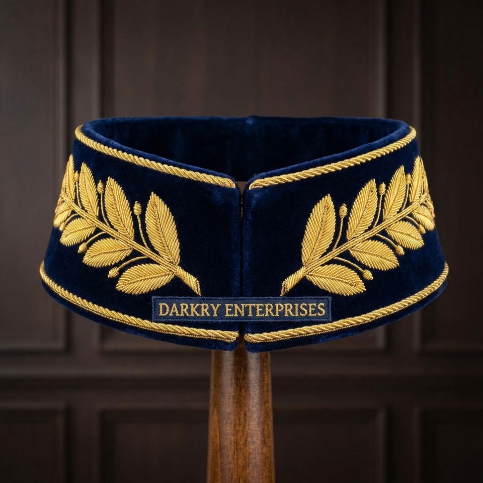 Servicio de Personalización de Cuellos Mandarín de Terciopelo Azul Real con Bordado de Lingotes de Oro Hecho a Mano