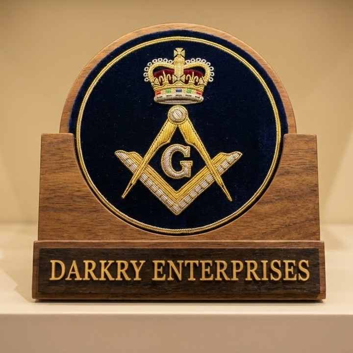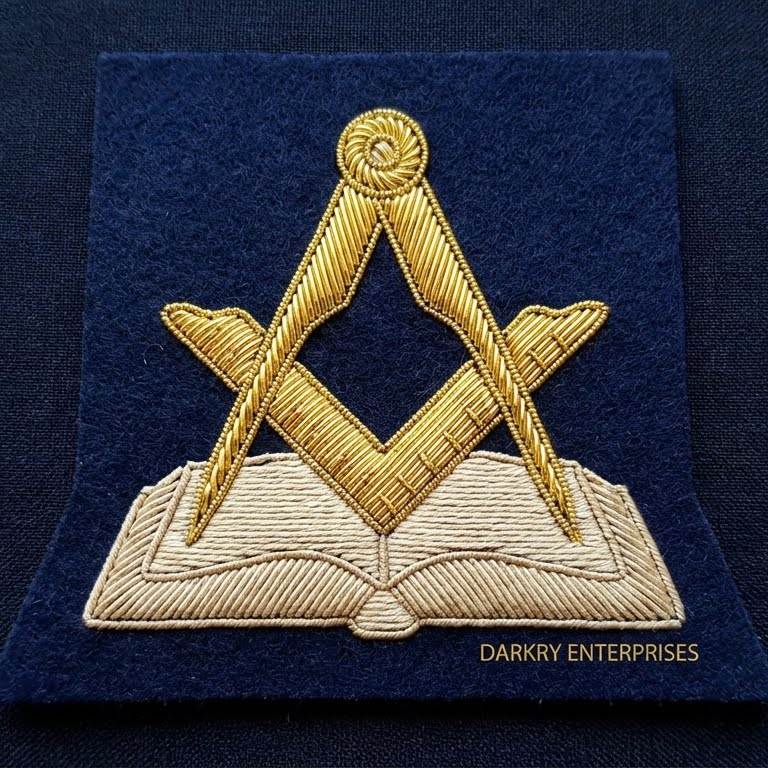 Parche de insignia personalizado hecho a mano con hilo de oro, compás masónico, letra G, corona, emblema de terciopelo azul para blazer, parche de uniforme.