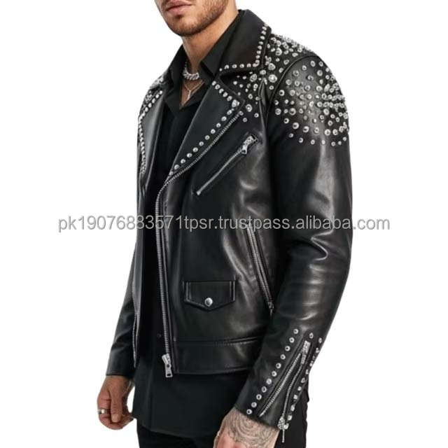 Chaqueta de Cuero Personalizada Hecha a Mano con Tachuelas para Hombre, Estilo Brando Rock Punk, con Tachuelas Plateadas, Chaqueta de Motociclista Ace Star de Cuero Auténtico