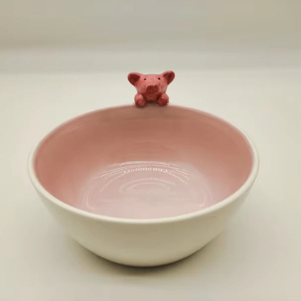 Cuenco de cerámica Porky Pig pintado a mano personalizado, estilo bohemio Oriental ecológico para el hogar, cocina, ensaladera de Año Nuevo