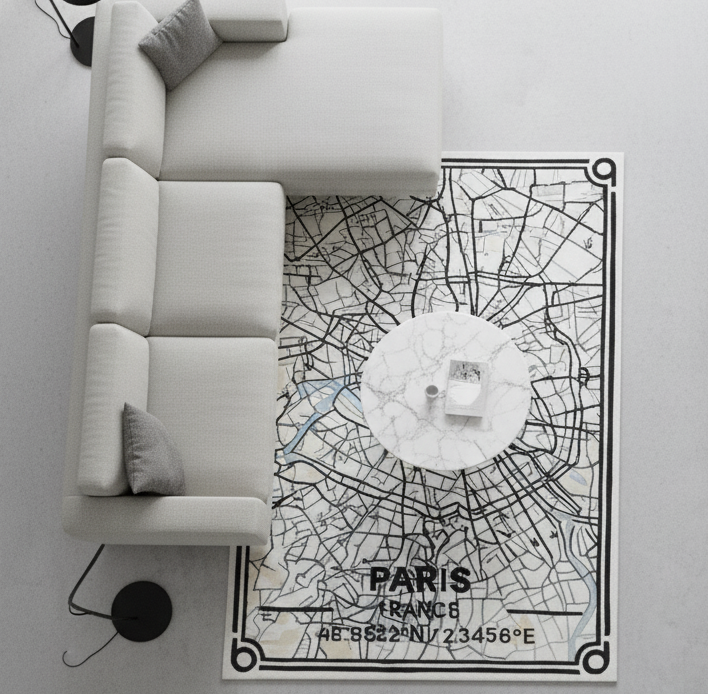 Alfombra personalizada ecológica de lana 100% con mapa de París, diseño de calle de ciudad moderna, alfombra decorativa para el hogar y la sala de estar