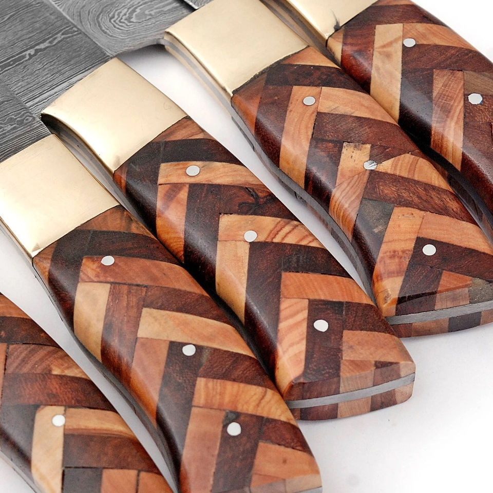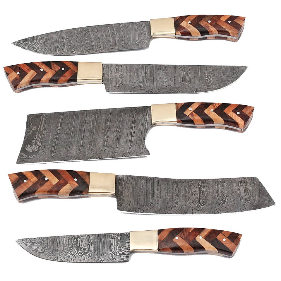 Juego de Cuchillos de Chef de Acero de Damasco con Mango Personalizado, Juego de Cuchillos de Chef de Acero de Damasco Hechos a Mano con Acabado Elegante