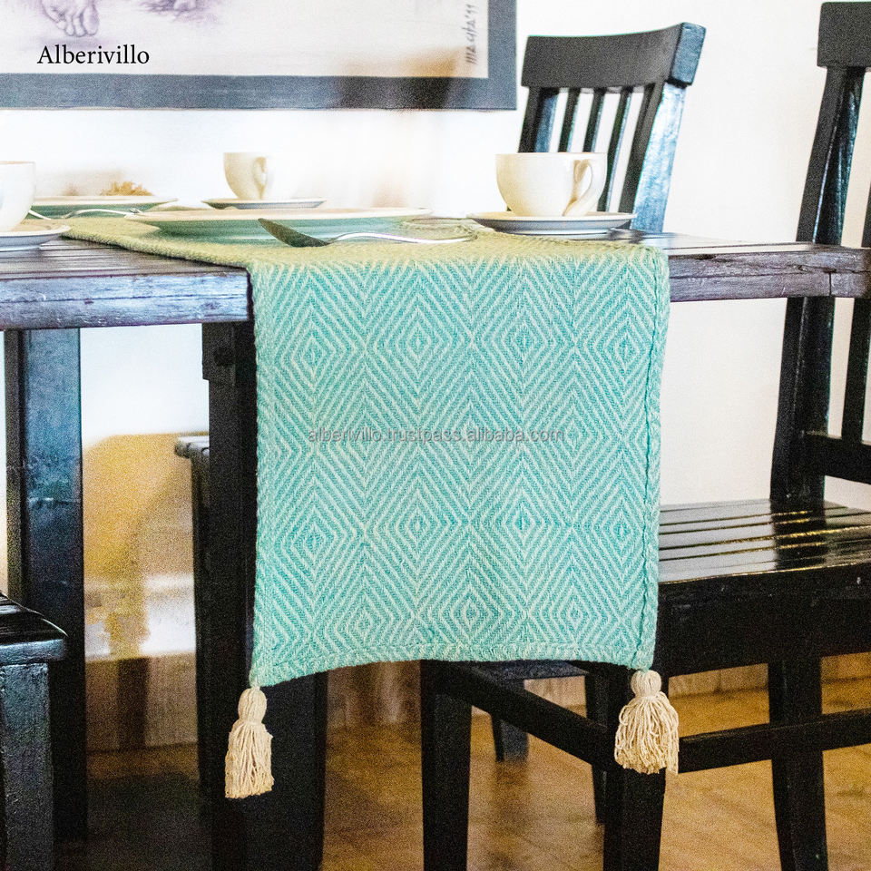 Caminos de mesa decorativos bohemios hechos a mano personalizados, tapetes de mesa plegables con borlas de algodón y diamantes verdes para exteriores, técnicas tejidas