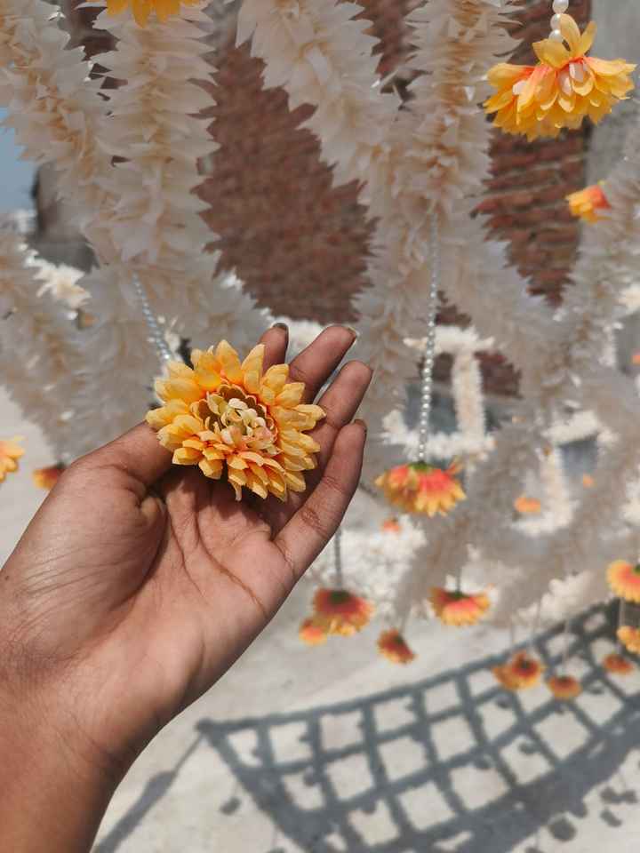 Flor Artificial Hecha a Mano Personalizada, Phoolon Ki Chaadar | Blanco y Amarillo con Perlas Colgantes | Toldo de Entrada para Bodas