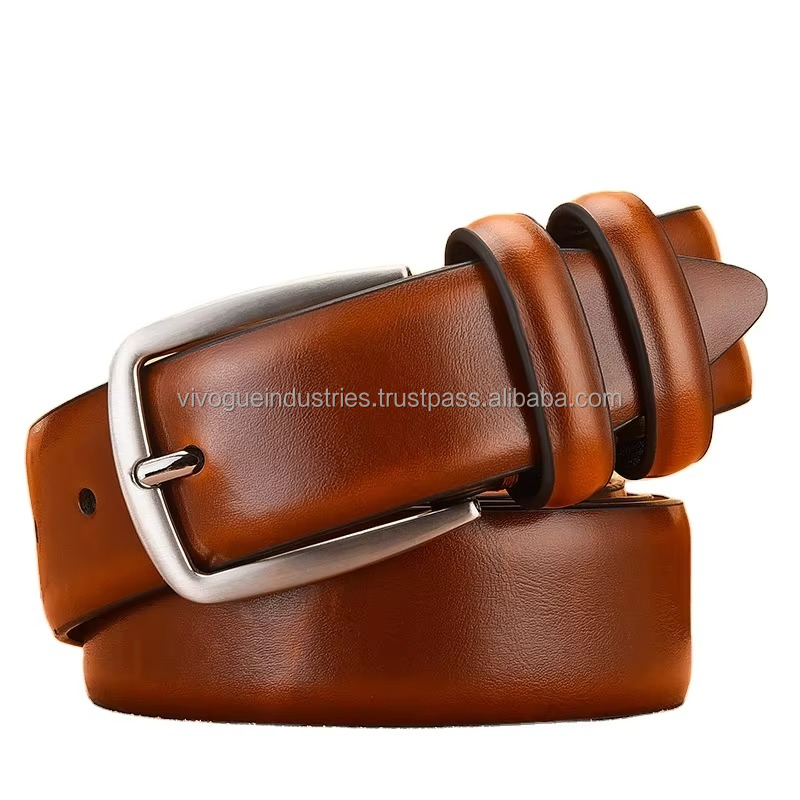 Cinturón de Cuero Casual Hecho a Mano Personalizado, 100% Cuero Vacuno Genuino Marrón, Hebilla Cuadrada Vintage de Cobre, Resistente, 3.8CM de Ancho