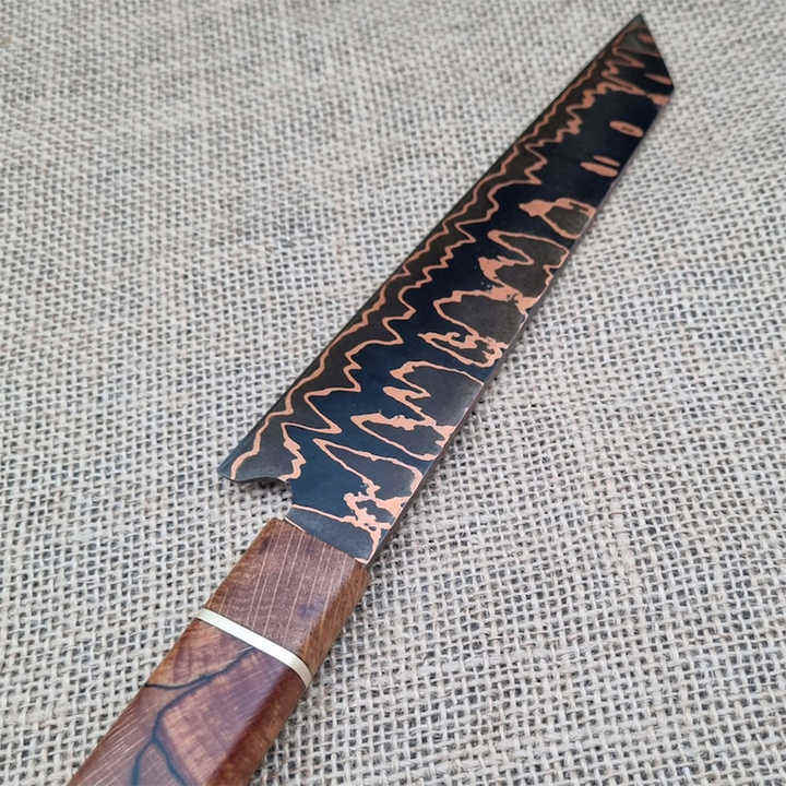 Cuchillo de chef de cocina de acero al carbono hecho a mano personalizado con Funda de cuero