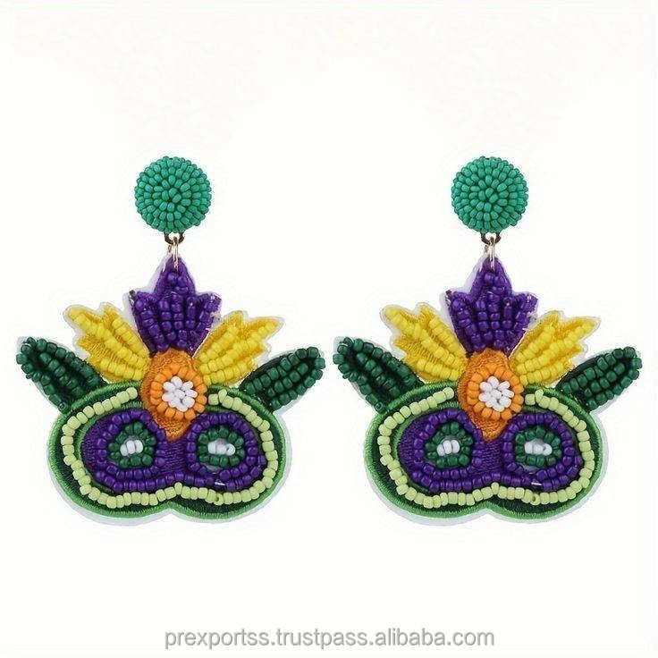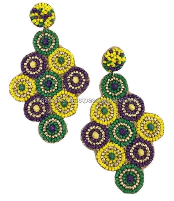 Personalizado hecho a mano carnaval máscara diseño semilla cuenta pendientes declaración moda joyería colorido Festival colgante gota pendientes con cuentas