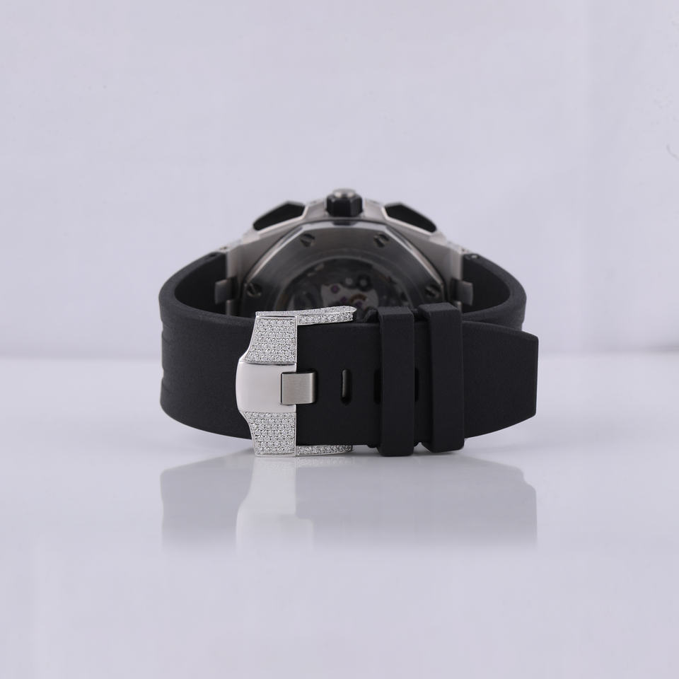 Reloj de Pulsera para Hombre, Mecánico, Personalizado, con Esfera Negra, Media Incrustación de Diamantes Moissanite VVS, Hecho a Mano