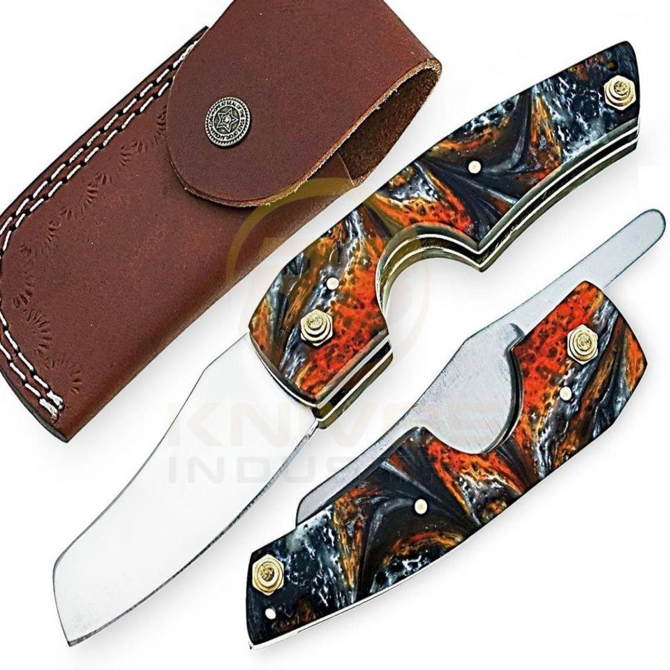 Cortador de Cigarros Hecho a Mano con Mango de Resina – Cuchillo Plegable para Cigarros de Acero Inoxidable de Primera Calidad
