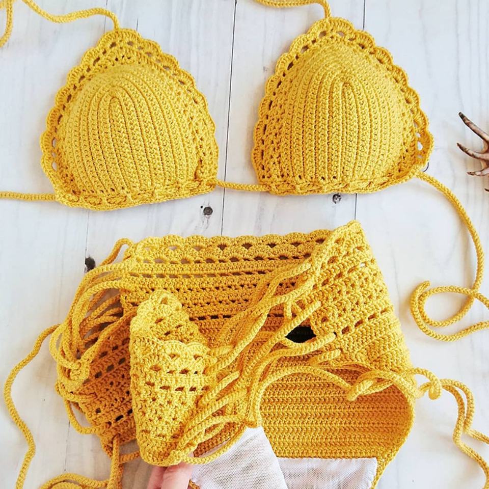 Bikini de Ganchillo Hecho a Mano Personalizado, Sexy, para Chicas de 18 Años, Traje de Baño con Cuello en V, Ropa de Playa, Técnica de Sujetador Push-Up para Mujer